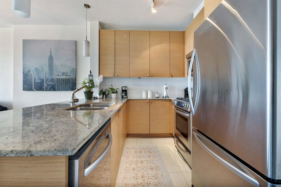 WELCOME TO ARIA at SUTERBROOK VILLAGE! This beautiful spacious 16th floor unit features a bright and open layout. Relax & enjoy the sunrise on your northeast balcony w/ a SPACTAULAR VIEW of CITY and MOUNTAINS. The gourmet kitchen features stainless steel appliances, gas range, granite countertops, lots of storage, high ceilings and open bar area that overlooks the dining and living space. This unit also features in-suite laundry & spacious primary bedroom with a large closet & access to balcony. Amenities at the ARIA CLUB include indoor pool, sauna/steam, hot tub, gym, squash court, party room & theatre. Just steps from Romer’s, Starbucks, Thrifty Foods, Freshii, transit & Evergreen Line! Walk down to Rocky Point, Boathouse & local breweries. This unit is complete with 1 parking & storage.