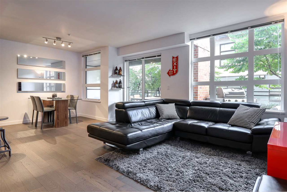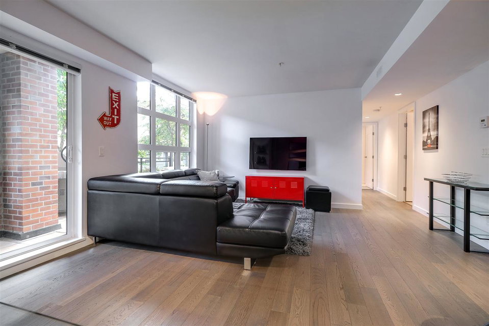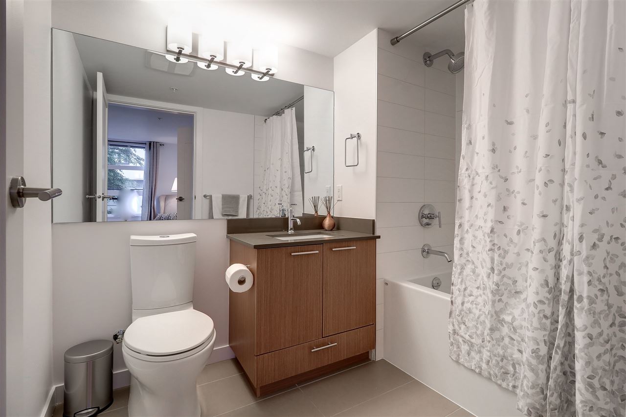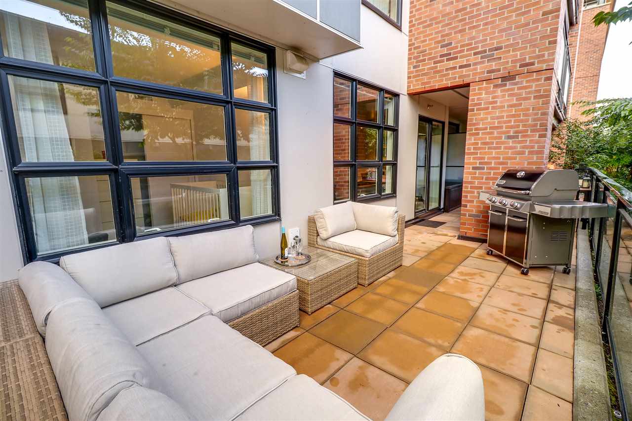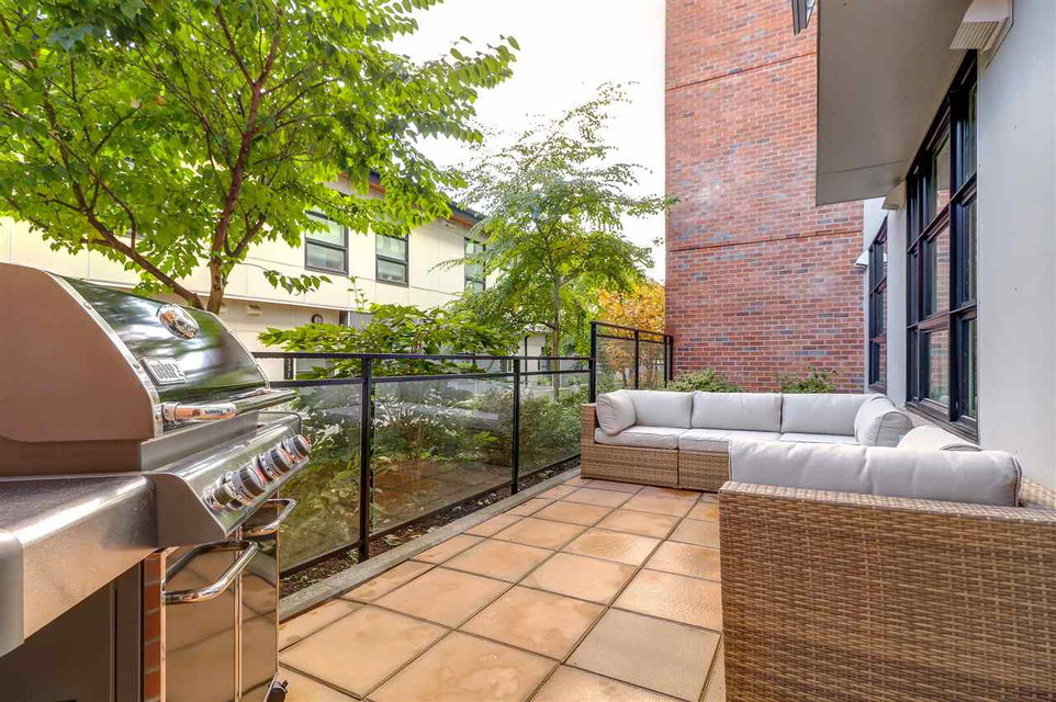 Welcome to the Station! Prime Port Moody location with all the amenities at your doorstep. Luxury finishing throughout this 2 bdrm home incl quartz counters, engineered HW flooring, stainless steel appliances, front loading washer & dryer & a cost effective Geothermal heating & cooling system for your year round comfort. Wide open floor plan maximizes your living space, adding to it is an amazing out door area; over 300 sq ft patio, partially covered, with plenty of room for your table, outdoor furniture & BBQ. Only 1 block from the Skytrain/WC Express station, steps to PoMo Elementary school, restaurants & shopping & only a short walk to Rocky Point Park & Brewers Row. Well run building has gym, common patio area & visitor parking. Seller leases adtl parking stall for $60 per month.
