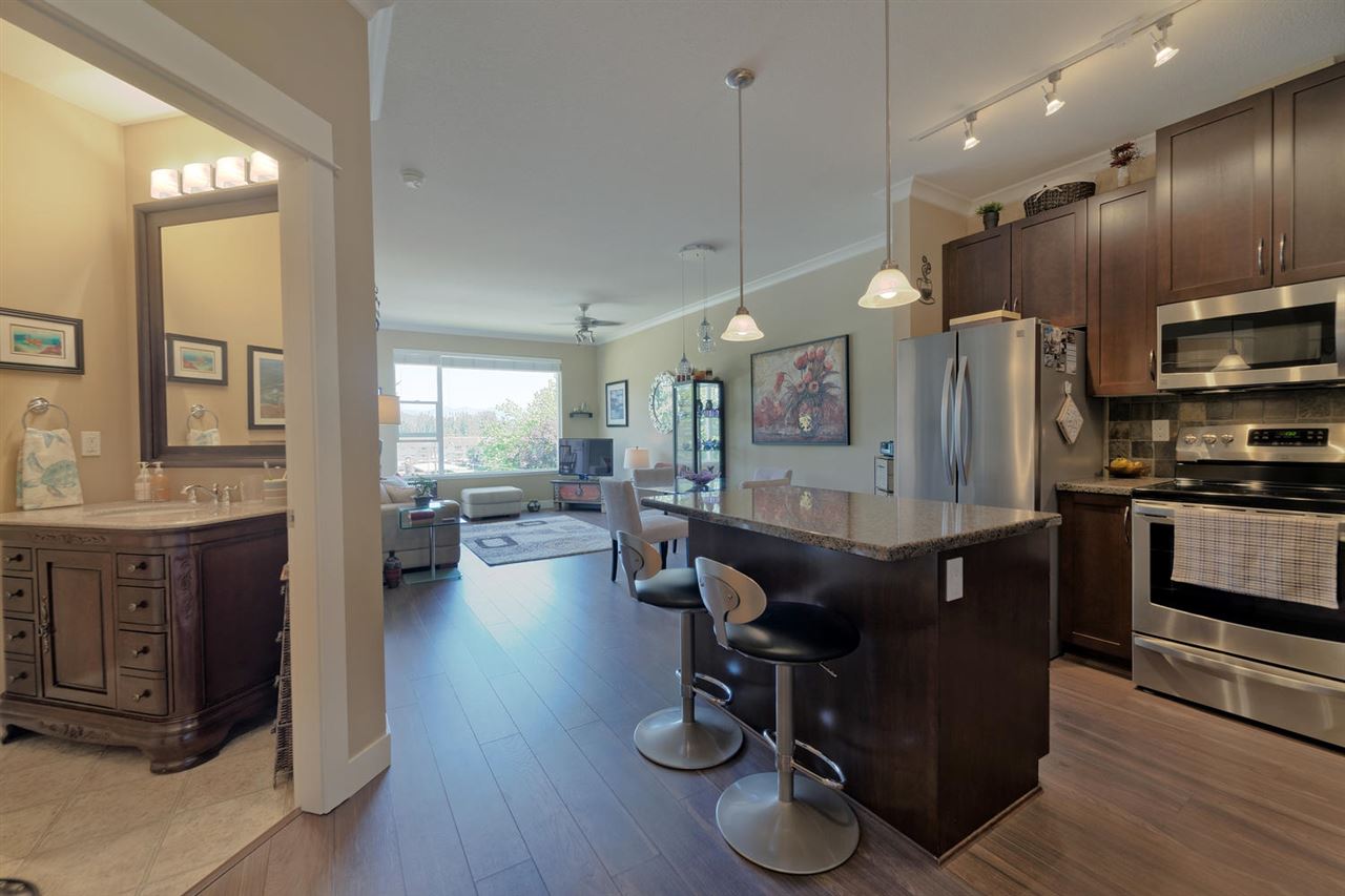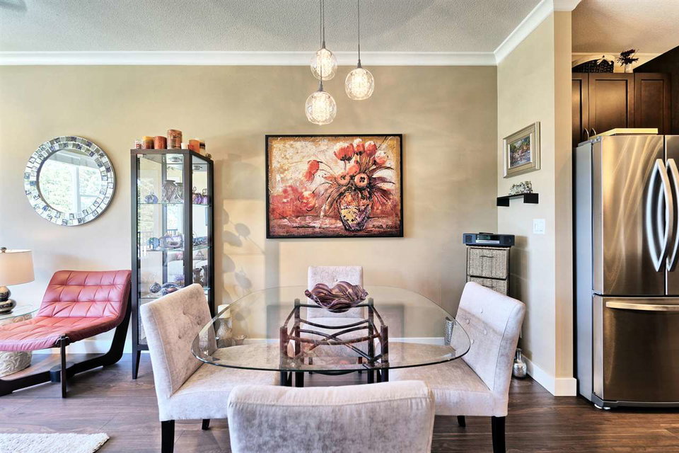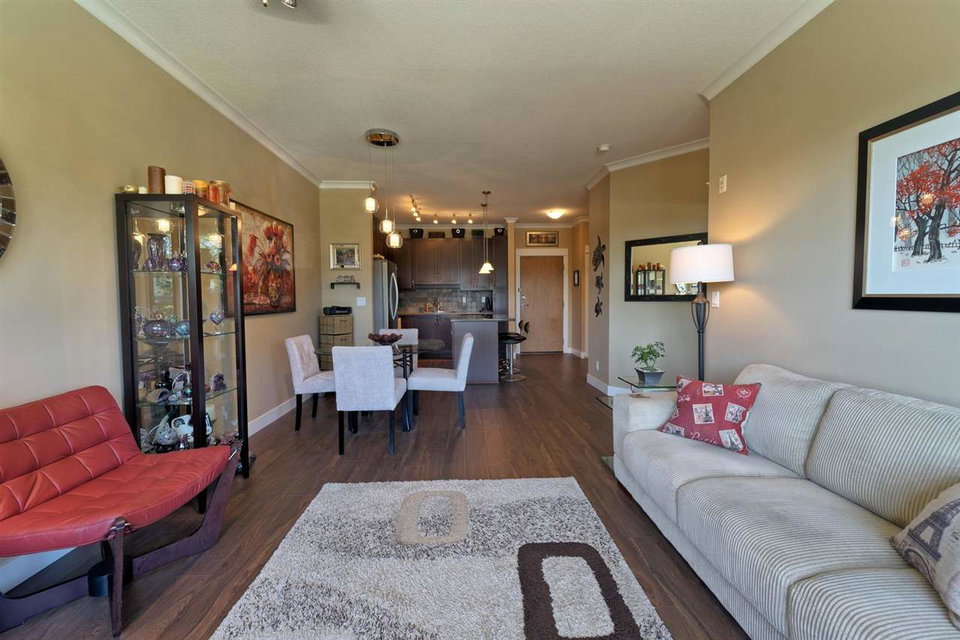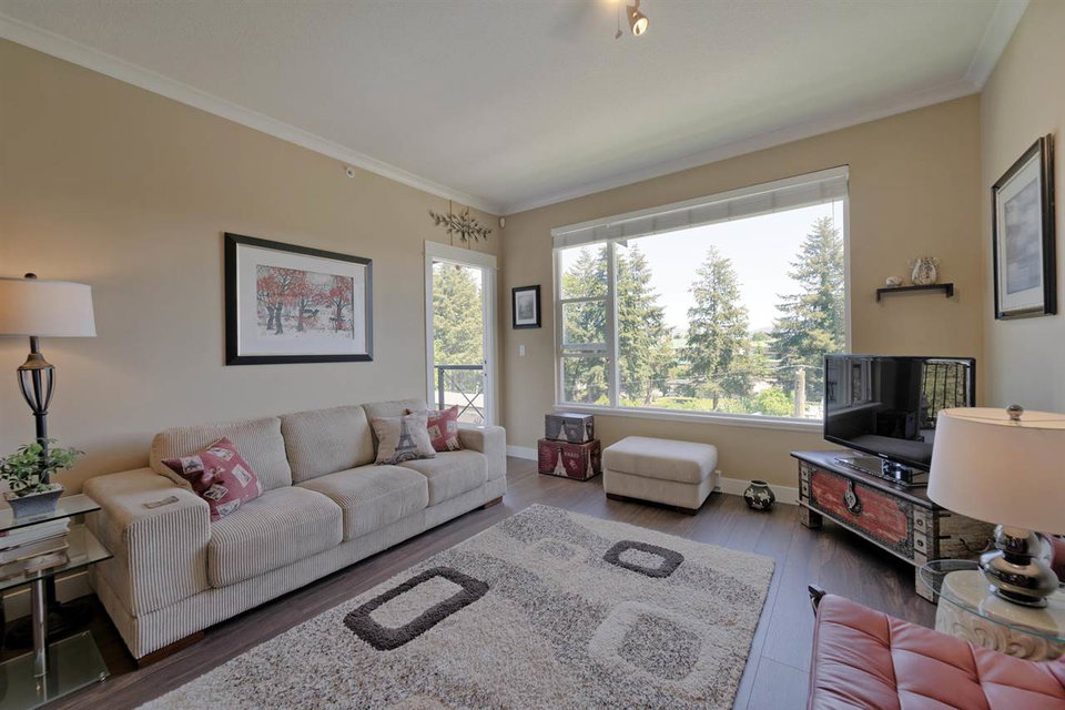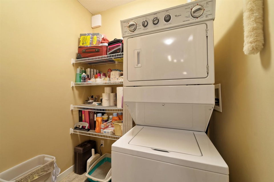 SPECTACULAR Top Floor Unit at the WESTWOOD!! Talk about upgrades!! 9’ ceilings, crown molding, FULL granite counter tops, NEW fridge, NEW range, NEW microwave, NEW dining/bathroom lighting, NEW laminate flooring, upgraded locks on both entry doors, ceiling fans added in living/bedroom, custom bike rack in parking stall and amazing mountain views from balcony! Very centrally located near shops, transit and parks. No rentals allowed. IMMACULATE condition and many more features! This unit comes complete with one parking stall.