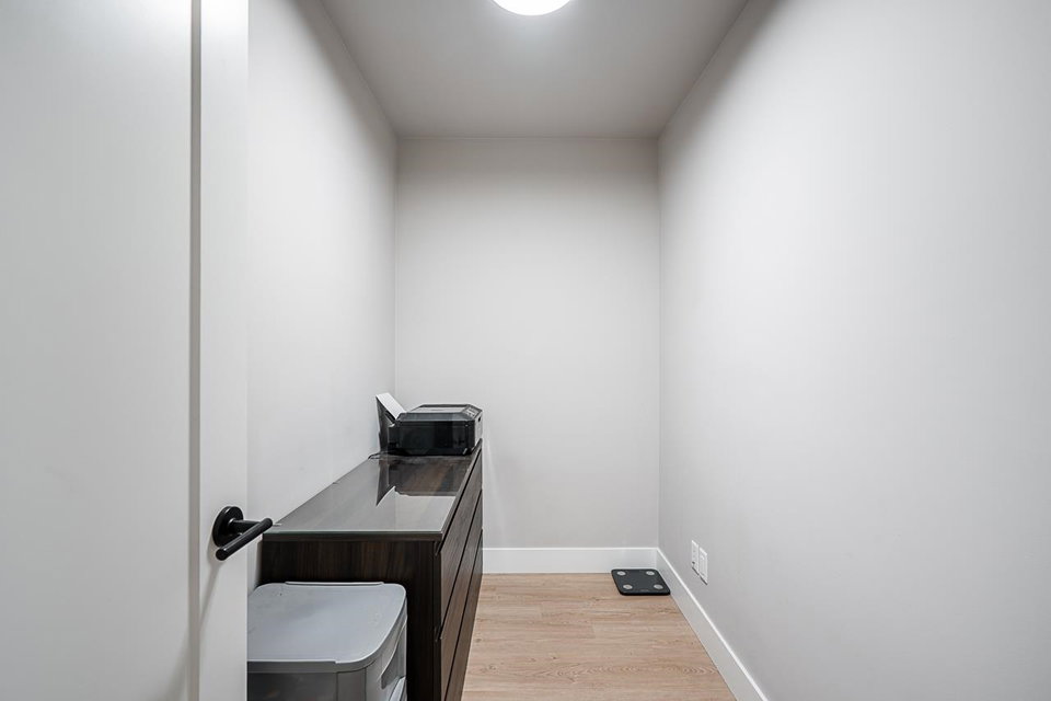 Welcome to this modern and thoughtfully designed 1 bed+den unit, offering 661 sqft of comfortable living in the heart of Willoughby. Situated on the quiet inside of the third floor, this unit provides a bright and functional open-concept layout that maximizes every inch of space. Enjoy cooking in the full-size kitchen featuring sleek cabinetry, quartz countertops, and stainless steel appliances. The generous living area opens to a private balcony, ideal for relaxing or entertaining. The versatile den is perfect for a home office, nursery, or extra storage. This home includes ample closet space, in-suite laundry, and access to Hudson & Singer’s lifestyle amenities, including a courtyard, lounge, and communal workspaces. Located steps from Willoughby Town Centre, schools, parks, and transit.