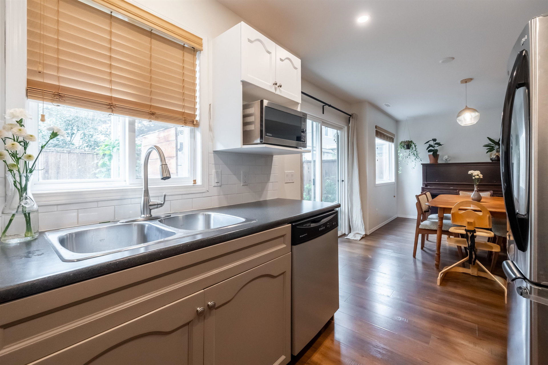 This stylish 3 bed, 2.5 bath townhome in Chilliwack offers 1,365 sqft of updated living space. The bright main level features upgraded floors, stainless steel appliances, modern backsplash, and added pot lights for a fresh feel. Upstairs, enjoy convenient laundry and a spacious primary retreat with a beautifully renovated 2024 ensuite. Interior paint (2018), hot water tank (2025), upgraded electrical with dimmers, and heat pump provide comfort and peace of mind. The private fenced, south facing yard is perfect for kids, your dog, and relaxed evenings on the patio. Walking distance to parks, schools and downtown/District 1881. This home is move-in ready and designed for everyday living.